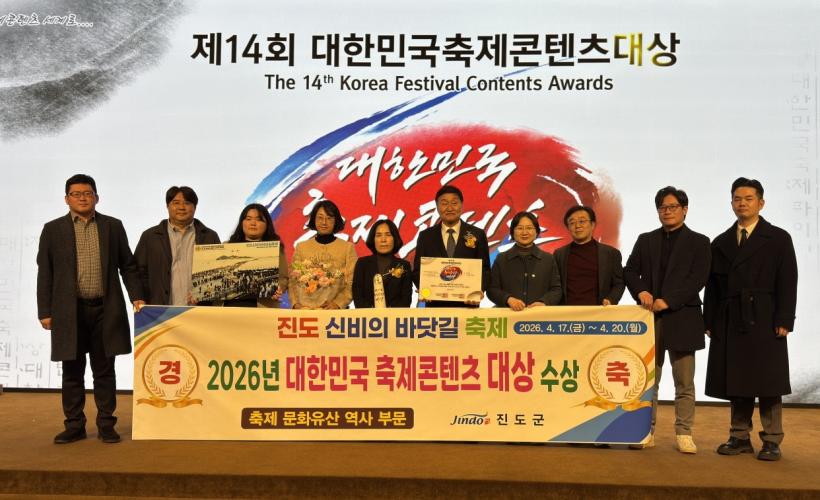 ±èÈñ¼ö Áøµµ±º¼ö´Â ¡°À̹ø¿¡ ¹ÞÀº ´ë»óÀº Áøµµ½ÅºñÀÇ¹Ù´å±æÃàÁ¦°¡ ´ëÇѹα¹À» ´ëÇ¥ÇÏ´Â ÃàÁ¦·Î ÀÚ¸® Àâ¾ÒÀ½À» ÀǹÌÇÑ´Ù¡±¶ó¸ç, ¡°¾ÕÀ¸·Îµµ Â÷º°ÈµÈ ÄÜÅÙÃ÷·Î Áö¿ª Áֹΰú ÇÔ²² ÃàÁ¦¸¦ ¿î¿µÇØ, ´õ ¸¹Àº ±¹³»¿Ü °ü±¤°´À» À¯Ä¡Çϰí Áö¿ª°æÁ¦¸¦ Ȱ¼ºÈÇÏ´Â µ¥ À̹ÙÁöÇϰڴ١±¶ó°í ¸»Çß´Ù.