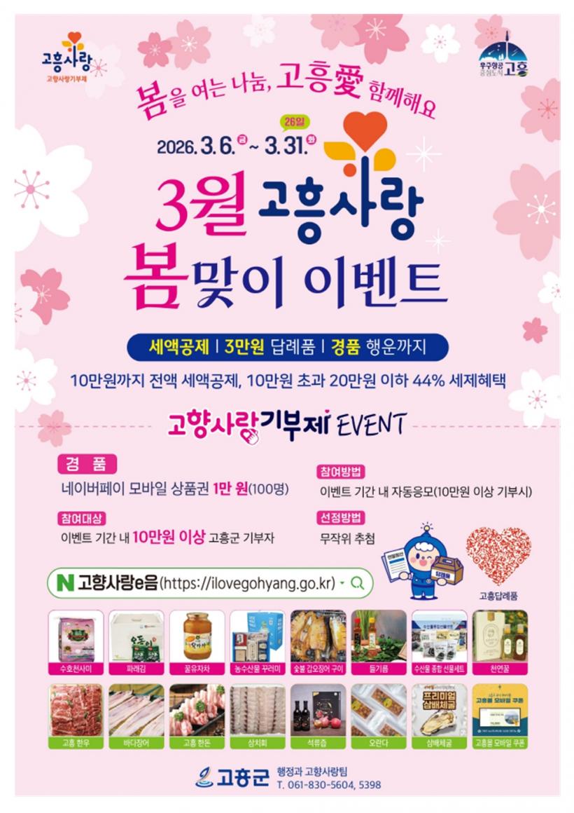 °íÇâ»ç¶û±âºÎÁ¦´Â 10¸¸ ¿ø±îÁö Àü¾× ¼¼¾×°øÁ¦°¡ Àû¿ëµÇ¸ç, 10¸¸ ¿ø Ãʰú 20¸¸ ¿ø ÀÌÇÏ ±âºÎ ½Ã 44% ¼¼¾×°øÁ¦ ÇýÅÃÀÌ ÀÖ´Ù. ¶ÇÇÑ ±âºÎ±ÝÀÇ 30% À̳»¿¡¼ Áö¿ª Ư»ê¹° ´ä·ÊǰÀ» ¹ÞÀ» ¼ö ÀÖ´Ù. ÇöÀç °íÈï Çѿ츦 ºñ·ÔÇØ ½Ò, À¯ÀÚ °¡°øÇ°, ¸¶¸¥±è, ²Ü µî Áö¿ªÀ» ´ëÇ¥ÇÏ´Â ³ó¼öƯ»ê¹°ÀÌ ´ä·ÊǰÀ¸·Î Á¦°øµÇ°í ÀÖ´Ù.