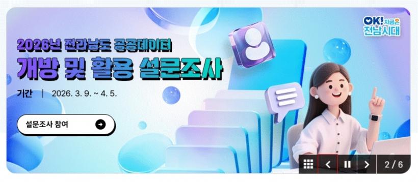 ¼³¹®Á¶»ç´Â °ø°øµ¥ÀÌÅÍ¿¡ °ü½É ÀÖ´Â ±¹¹ÎÀ̶ó¸é ´©±¸³ª Âü¿©ÇÒ ¼ö ÀÖ´Ù. Àü³²µµ ´ëÇ¥ ´©¸®Áý(jeonnam.go.kr) °Ô½ÃÆÇÀ» ÅëÇØ ¿Â¶óÀÎÀ¸·Î Âü¿©ÇÒ ¼ö ÀÖÀ¸¸ç Á¶»ç Ç׸ñÀº µ¥ÀÌÅÍ °³¹æ Èñ¸Á ºÐ¾ß µî ÃÑ 13°³ ¹®Ç×À¸·Î ±¸¼ºµÆ´Ù.