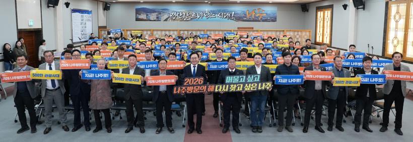 Çà»ç¿¡ Âü¼®ÇÑ ±â°ü°ú ´Üü °ü°èÀÚµéÀº °ü±¤µµ½Ã ³ªÁÖÀÇ Ã¹ÀλóÀ» ½Ã¹ÎÀÌ ÇÔ²² ¸¸µé¾î °£´Ù´Â Àǹ̸¦ °øÀ¯ÇÏ¸ç ¡®2026 ³ªÁֹ湮ÀÇ ÇØ¡¯ ¼º°ø °³ÃÖ¸¦ À§ÇÑ °øµ¿ÀÇ ÀÇÁö¸¦ ´ÙÁ³´Ù.
