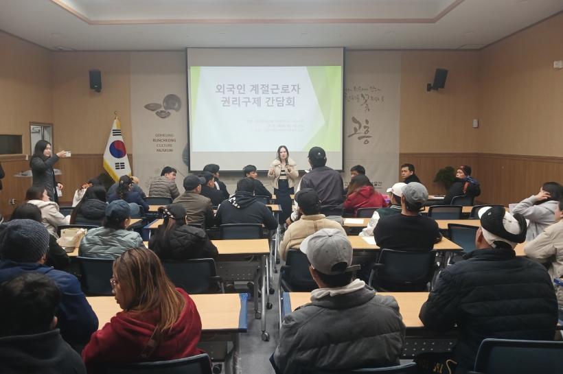À̹ø °£´ãȸ´Â ÃÖ±Ù Á¦±âµÈ ÀαÇÄ§ÇØ ÀÇȤ°ú °ü·ÃÇØ ±Ù·ÎÀÚµéÀÇ °íÃæÀ» Á÷Á¢ µè°í ½ÇÁúÀûÀÎ µµ¿òÀ» ÁÖ±â À§ÇØ °íÈﱺ°ú ±¤ÁÖÃâÀÔ±¹¿Ü±¹Àλ繫¼Ò°¡ °øµ¿À¸·Î ÁÖ°üÇß´Ù.