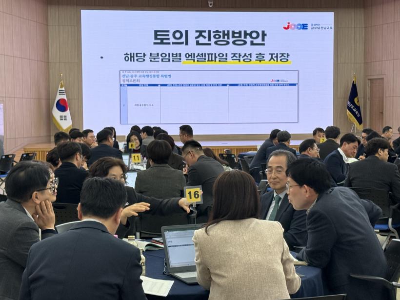 Àü³²±³À°Ã»Àº Áö³ 16ÀÏ Ã»»ç ´ëȸÀǽǿ¡¼ º»Ã» ÆÀÀå, ±³À°Áö¿øÃ» °úÀå µî Áß°£°ü¸®ÀÚ 142¸íÀÌ Âü¿©ÇÑ Á¤Ã¥Åä·Ðȸ¸¦ °³ÃÖÇß´Ù. À̹ø Åä·Ðȸ´Â ¡¸Àü³²¡¤±¤ÁÖÅëÇÕÆ¯º°½Ã ¼³Ä¡¸¦ À§ÇÑ Æ¯º°¹ý¡¹ ½ÃÇà(2026. 7. 1.)¿¡ ¾Õ¼, ±³À° ºÐ¾ß ÇÙ½É Æ¯·ÊµéÀ» Áö¿ª ½ÇÁ¤¿¡ ¸Â´Â Á¶·Ê·Î ±¸Ã¼ÈÇϰí, ÅëÇÕ °úÁ¤¿¡¼ ¿¹»óµÇ´Â ÇöÀåÀÇ È¥¶õÀ» ÃÖ¼ÒÈÇÒ ¾ÈÁ¤Àû ±³À°ÇàÁ¤ ÅëÇÕ ¹æ¾ÈÀ» ³íÀÇÇÏ´Â ÀÚ¸®·Î ¸¶·ÃµÆ´Ù.