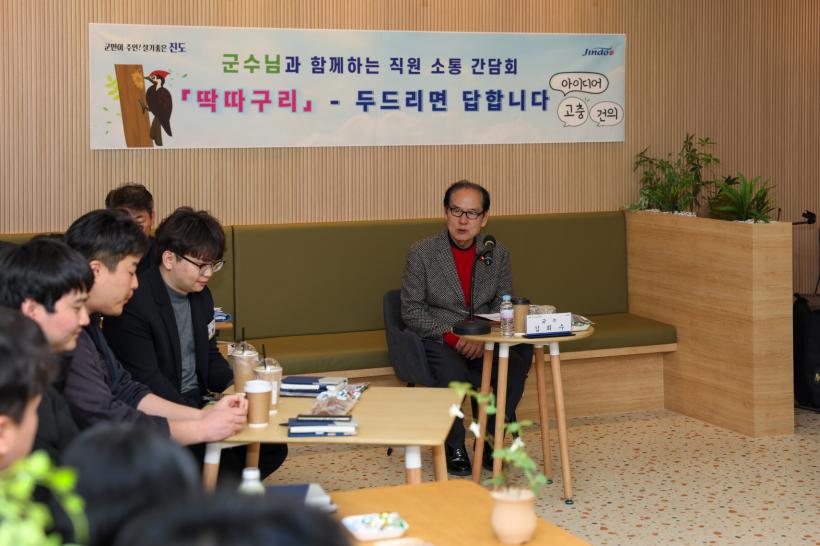 [°ø°£´º½º = Àå¿ÁÁø±âÀÚ] Áøµµ±ºÀº Áö³ 3¿ù 4ÀϺÎÅÍ 3¿ù 17ÀϱîÁö ±èÈñ¼ö Áøµµ±º¼ö¿Í Á÷¿øµéÀÌ ÀÚÀ¯·Ó°Ô ÀǰßÀ» ³ª´©´Â Á÷¿ø ¼ÒÅë °£´ãȸÀÎ ¡®µüµû±¸¸®¡¯¸¦ °³ÃÖÇß´Ù.