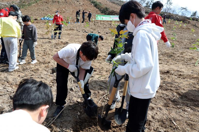 Âü¼®ÀÚµéÀº ¾à 1ha ¸éÀû¿¡ Ȳĥ³ª¹« 1,100ÁÖ¸¦ ½ÄÀçÇϸç Ǫ¸¥ ½£ Á¶¼º°ú ź¼ÒÈí¼ö¿ø È®Ãæ¿¡ ÈûÀ» º¸ÅÉ´Ù. Ȳĥ³ª¹«´Â ¿ì¸®³ª¶ó ³²ÇØ¾È Áö¿ª¿¡¼ ÀÚ¶ó´Â Ư»ê ¼öÁ¾À¸·Î, °æÁ¦Àû °¡Ä¡¿Í ÇÔ²² »ê¸² »ýÅÂ°è º¸Àü¿¡ ±â¿©ÇÏ´Â ¼öÁ¾À¸·Î ¾Ë·ÁÁ® ÀÖ´Ù.