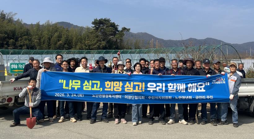 À̳¯ Çà»ç¿¡´Â ³ë¾È¸éÇàÁ¤º¹Áö¼¾Å͸¦ ºñ·ÔÇØ ÀÌÀåÇùÀÇȸ, ÁÖ¹ÎÀÚÄ¡À§¿øÈ¸, û³âȸ, ¸¶À»ÁֹΠµî 100¿© ¸íÀÌ Âü¿©ÇØ ÇÔ²² ³ª¹«¸¦ ½ÄÀçÇÏ¸ç ±âÈÄÀ§±â ±Øº¹°ú ȯ°æ º¸Àü¿¡ ´ëÇÑ °ø°¨´ë¸¦ Çü¼ºÇß´Ù.
