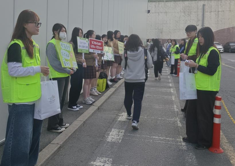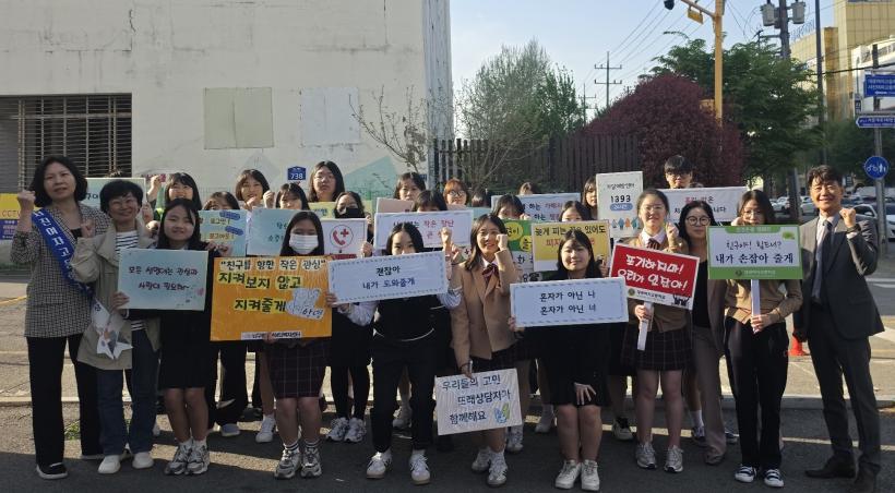 Ä·ÆäÀο¡´Â ´ë±¤¿©°í¿Í ¼Áø¿©°í Çлýµé, ³²±¸Ã»¼Ò³â»ó´ãº¹Áö¼¾ÅÍ °ü°èÀÚ µîÀÌ Âü¿©ÇØ ¼ÕÆÖ¸» µîÀ» µé°í Çб³Æø·Â ¿¹¹æ È«º¸È°µ¿À» ÆîÃÆ´Ù.