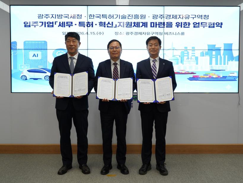 À̳¯ Çù¾à½Ä¿¡´Â ¼±¼®±â ±¤ÁÖ°æÀÚûÀå, ±èÇм± ±¤ÁÖÁö¹æ±¹¼¼Ã»Àå, ±è¸í¼· Çѱ¹Æ¯Çã±â¼úÁøÈï¿øÀåÀÌ Âü¼®ÇØ Áö¿ª ±â¾÷ÀÇ Çõ½Å ¼ºÀåÀ» À§ÇÑ Çù·Âü°è ±¸Ãà¿¡ ¶æÀ» ¸ð¾Ò´Ù.