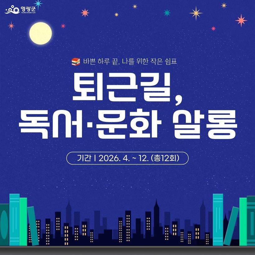 [°ø°£´º½º = ±è¼ö±Ù±âÀÚ] ¿µ±¤±º¿¡¼´Â ÆòÀÏ ÁÖ°£¿¡ µµ¼°ü ÀÌ¿ëÀÌ ¾î·Á¿î Á÷ÀåÀÎÀ» ´ë»óÀ¸·Î ¾ß°£ µ¶¼¹®ÈÇÁ·Î±×·¥ ¡®Åð±Ù±æ, µ¶¼‧¹®È »ì·Õ¡¯À» ¿À´Â 4¿ù 22ÀϺÎÅÍ ¿î¿µÇÑ´Ù°í ¹àÇû´Ù.