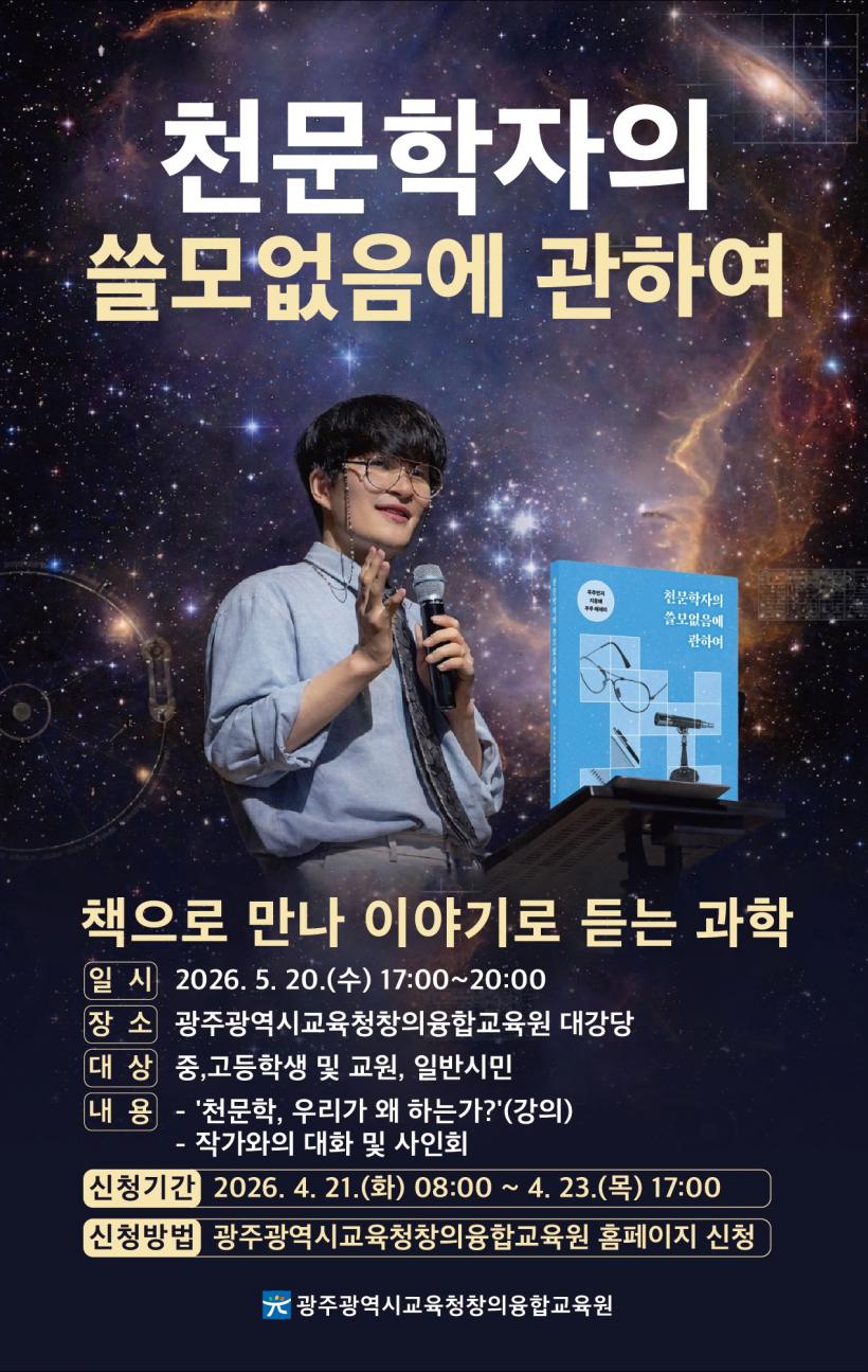 ±¤ÁÖâÀÇÀ¶ÇÕ±³À°¿ø Áø¿µ ¿øÀåÀº ¡°Áö¿õ¹è ±³¼ö¿ÍÀÇ ¸¸³²ÀÌ ÇлýµéÀÌ ¿ìÁÖ¿¡ ´ëÇÑ È£±â½ÉÀ» ÇØ¼ÒÇÏ°í °úÇÐÀû ¼Ò¾çÀ» ³ÐÈ÷´Â °è±â°¡ µÇ±æ ¹Ù¶õ´Ù¡±¸ç ¡°Ãµ¹®ÇÐÀÇ °¡Ä¡¸¦ ³ª´©´Â À̹ø Ư°¿¡ ¸¹Àº Çлý°ú ±³¿øÀÇ °ü½É°ú Âü¿©¸¦ ¹Ù¶õ´Ù¡±°í ¸»Çß´Ù.