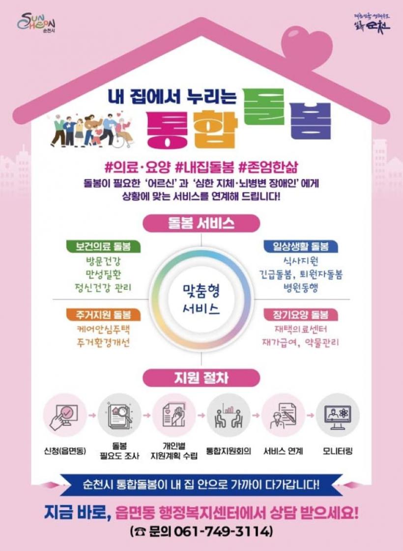 ÇÑÆí ÅëÇÕµ¹º½ ¼ºñ½º ½ÅûÀº ÁÖ¼ÒÁö À¾¸éµ¿ ÇàÁ¤º¹Áö¼¾ÅÍ¿¡¼ ¹æ¹® ½ÅûÇÒ ¼ö ÀÖÀ¸¸ç, ÀÚ¼¼ÇÑ »çÇ×Àº À¾¸éµ¿ ÇàÁ¤º¹Áö¼¾ÅÍ ¶Ç´Â ¼øÃµ½Ã Äݼ¾ÅÍ(061-749-3114)·Î ¹®ÀÇÇÏ¸é ¾È³»¹ÞÀ» ¼ö ÀÖ´Ù.
