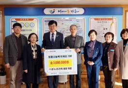 [°ø°£´º½º = ±è¼ö±Ù±âÀÚ] ¢ß¿Â´©¸®°ÇÃà(´ëÇ¥ À§ÈÆ)Àº Áö³ÇØ 12¿ù 31ÀÏ ¾î·Á¿î ÀÌ¿ôÀ» µ½±â À§ÇØ (Àç)ÀåÈﱺ³ª´®º¹ÁöÀç´Ü¿¡ ¼º±Ý 300¸¸¿øÀ» ±âºÎÇß´Ù. ¢ß¿Â´©¸®°ÇÃàÀº Áö¿ªÀÚȰ¼¾Å͸¦ ±â¹ÝÀ¸·Î ¿î¿µµÇ´Â ÀÚȰ±â¾÷À¸·Î, Ãë¾à°èÃþÀÇ ÀÚ¸³°ú ÀÏÀÚ¸® âÃâÀ» ¸ñÇ¥·Î Ȱµ¿Çϰí ÀÖ´Ù. À̳¯ Àü´ÞµÈ ±âʱÝÀº ÀåÈﱺ³ª´®º¹ÁöÀ硦