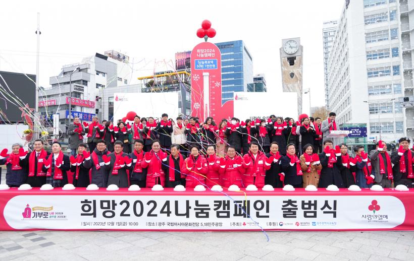 °±âÁ¤ ±¤ÁÖ½ÃÀåÀº ¡°¿ì¸® »çȸÀÇ ±×´ÃÁø °÷¿¡¼ ¾î·Á¿òÀ» °Þ´Â ºÐµéÀÌ ¸¹Àºµ¥ °æÁ¦±îÁö ¾î·Á¿ö ´õ¿í Ãß¿î °Ü¿ïÀ» ¾ÕµÎ°í ÀÖ´Ù¡±¸ç ¡°¿ÃÇØµµ ¾î±è¾øÀÌ 5¡¤18¹ÎÁÖ±¤Àå¿¡ ¿¬´ë¿Í ³ª´®ÀÇ »ç¶ûÀǿµµÅ¾ÀÌ ¼¼¿öÁ³´Ù. »ç¶ûÀǿµµÅ¾ÀÌ ¾¦¾¦ ¿Ã¶ó°¡´Â °ÍÀ» º¸¸ç ¸ðµÎ Èñ¸Á ³õÁö ¾Ê±æ ¹Ù¶õ´Ù. ±×´ÃÁø °÷¿¡ µû¶æÇÔÀ» ÀüÇÒ ¼ö ÀÖµµ·Ï Áö¿ª»çȸ¿Í »ç¶ûÀǿµµÅ¾ 100µµ ´Þ¼º¿¡ ÃÖ¼±À» ´ÙÇϰڴ١±°í ¸»Çß´Ù.