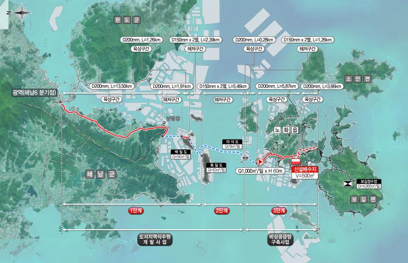 »ç¾÷Àº ±¤¿ª »ó¼öµµ¸¦ ÇØ³² ºÐ±âÁ¡¿¡¼ ³ëÈÀ¾±îÁö »ó¼ö °ü·Î 31.1§°(À°»ó °ü·Î 21.9§°, ÇØÀú °ü·Î 9.2§°), ¹è¼öÁö 1°³¼Ò, °¡¾ÐÀå 2°³¼Ò µî ½Ã¼³ ¿ë·® 1,000§©/ÀÏÀÇ ½Ã¼³À» ¼³Ä¡ÇÑ´Ù.