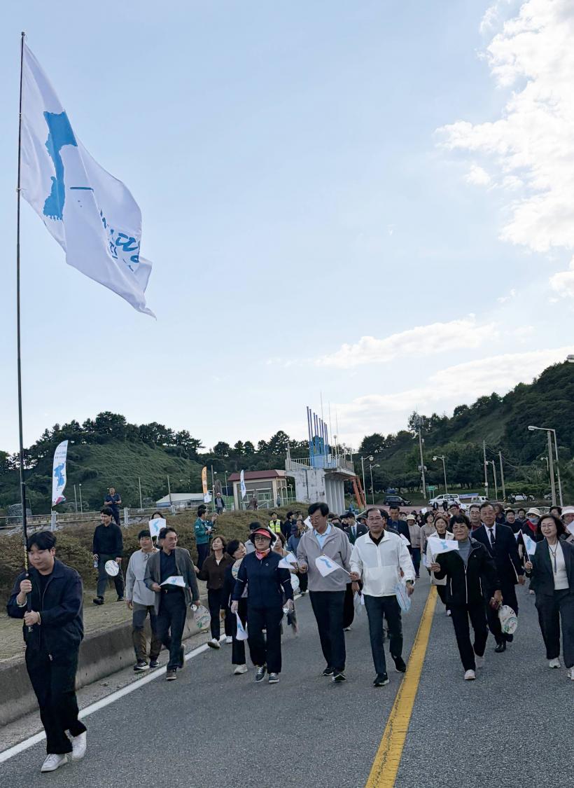 Âü°¡ÀÚµéÀº ¾ÈÀü ¼öÄ¢À» ¼÷ÁöÇϰí, ÅëÀÏ¿Â÷ ޹æ ÀÏÁ¤¿¡ ´ëÇÑ ¾È³»¸¦ ¹ÞÀº µÚ º»°ÝÀûÀÎ °È±â Çà»ç¿¡ ³ª¼¹´Ù.