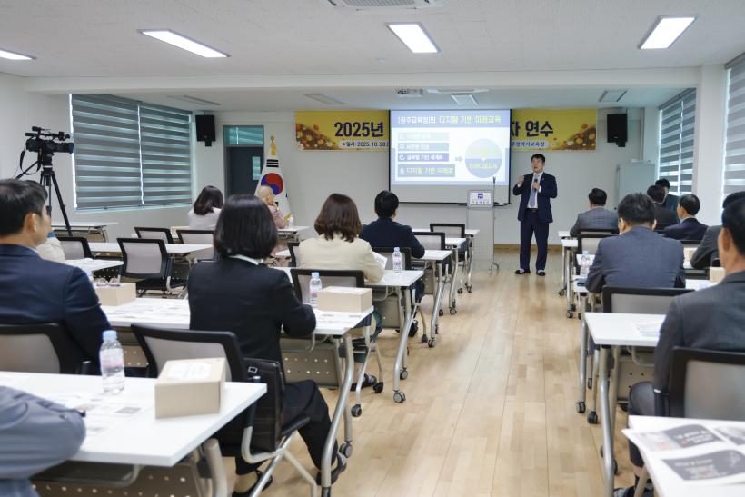 ƯÈ÷ ÀÌÁ¤¼± ±³À°°¨Àº ¡®AI¹Ì·¡±³À°°ú ¸íǰ ±¤ÁÖ±³À°¡¯ Ư°À» ÅëÇØ ±¤ÁÖ±³À°ÀÇ ¹Ì·¡ ºñÀü°ú AI ±â¹Ý ±³À°Çõ½Å Àü·«À» Á¦½ÃÇß´Ù. ÀÌ¾î ¸®´õ°¡ Á¶Á÷ ±¸¼º¿øµé°ú È¿°úÀûÀ¸·Î ¼ÒÅëÇÏ°í °ø°¨ÇÏ´Â ±â¼úÀ» °øÀ¯ÇϰíÀÚ ¡¯¸¶À½À» ¿òÁ÷ÀÌ´Â ¸®´õÀÇ ¼ÒÅë ¾ð¾î¡® ÁÖÁ¦·Î °Àǰ¡ ÁøÇàµÆ´Ù.