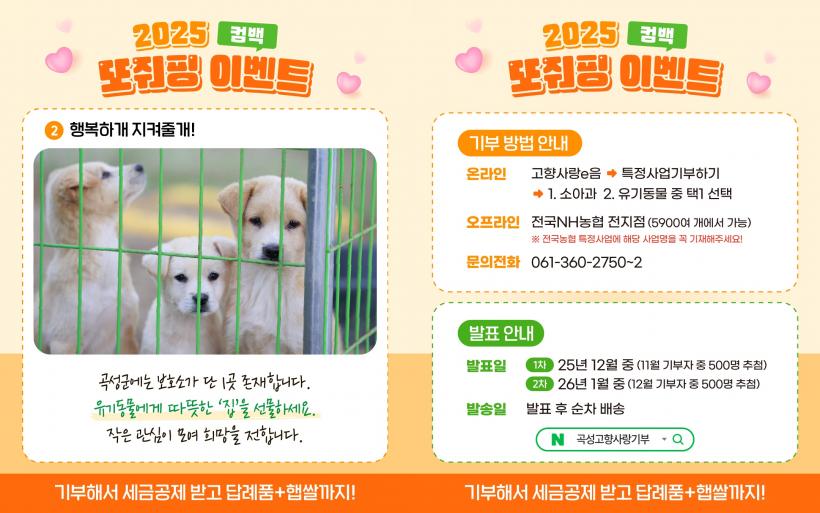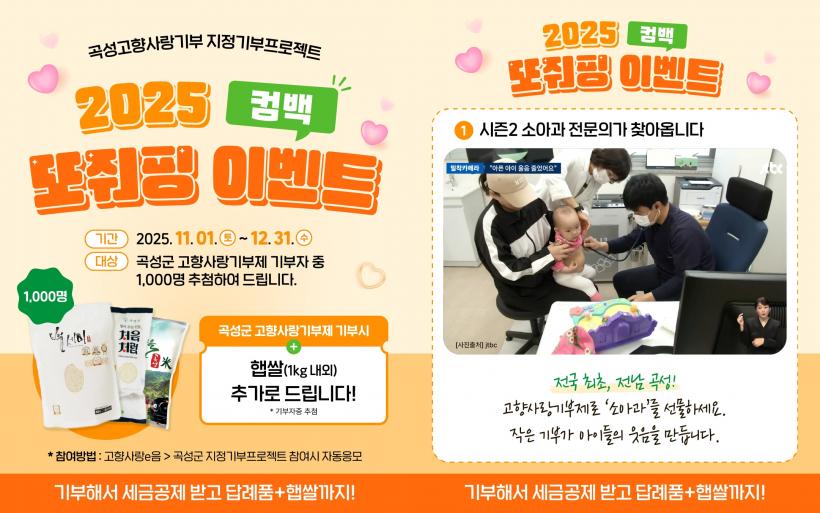 µÎ ´Þ µ¿¾È 10¸¸ ¿ø ÀÌ»ó ±âºÎÀÚ¿¡ ´ëÇØ ¸Å´Þ 500¸íÀ» ¹«ÀÛÀ§ ÃßÃ·ÇØ 1¸¸ ¿ø »ó´çÀÇ Áö¿ª ½ÒÀ» ÁõÁ¤ÇÑ´Ù. Âü¿© ¹æ¹ýÀº °íÇâ»ç¶ûeÀ½ ¶Ç´Â À§±âºê µî ¹Î°£ Ç÷§ÆûÀ» ÅëÇØ °î¼º±º¿¡ ±âºÎÇϸé ÀÚµ¿À¸·Î ÀÀ¸ðµÇ¸ç, ´ç÷ÀÚ´Â °³º° Å뺸µÈ´Ù.
