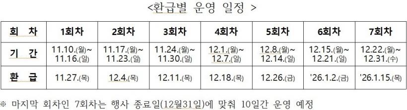 ȯ±ÞÀº °áÁ¦±Ý¾× 1¸¸¿ø ÀÌ»óºÎÅÍ 1000¿ø ´ÜÀ§·Î Àû¿ë(1000¿ø ¹Ì¸¸ Àý»ç)µÇ¸ç, °¢ ȸÂ÷ Á¾·á ÈÄ ¾à 10ÀÏ µÚºÎÅÍ µðÁöÅп´©¸® ¾Û ¡®¼±¹°Çϱ⡯ ±â´ÉÀ» ÅëÇØ ¼øÂ÷ Áö±ÞµÈ´Ù.