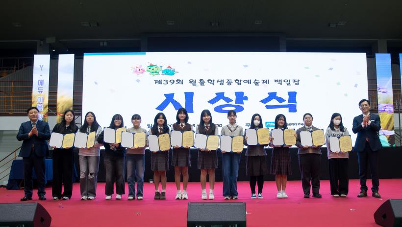 ÀÌÆ±³¯ÀÇ ¿ùÃâÇлýÁ¾ÇÕ¿¹¼úÁ¦ ½Ã»ó½Ä¿¡¼´Â ¿µ¾Ï¿©°í 3Çгâ Á¤Çý¿µ ÇлýÀÌ ±ÛÁþ±â, ¿µ¾Ï¿©°í 1Çгâ Â÷¼¼¿¬ ÇлýÀÌ ±×¸®±â, ¿µ¾Ï¿©Áß 2Çгâ ÃÖä¹Î¡¤¹Î½Â¾Æ¡¤¹éÁöÈ¿¡¤À̼º¹Ì ÇлýÀÌ ¿µ»ó ºÐ¾ß¿¡¼ °¢°¢ ´ë»óÀÎ Àü¶ó³²µµ±³À°°¨»óÀ» ¹Þ¾Ò´Ù.