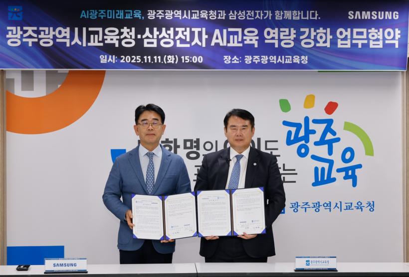 [°ø°£´º½º = ±è¼ö±Ù±âÀÚ] ±¤Áֽñ³À°Ã»(±³À°°¨ ÀÌÁ¤¼±)Àº Áö³ 11ÀÏ º»Ã» »óȲ½Ç¿¡¼ »ï¼ºÀüÀÚ¿Í ÇÔ²² AI±³À°¿ª·® °È¸¦ À§ÇÑ ¾÷¹«Çù¾à(MOU)À» ü°áÇß´Ù.
