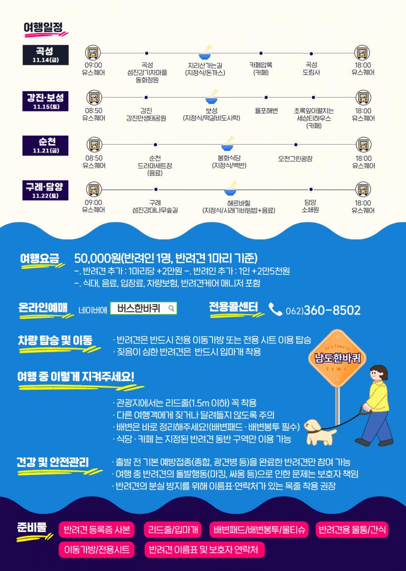 1¹Ú 2ÀÏ ¿©Çà»óǰÀº ±¤ÁÖ À¯½ºÄù¾î(Á¾ÇÕ¹ö½ºÅ͹̳Î)¿¡¼ Ãâ¹ßÇØ ¸ñÆ÷ ÇØ»óÄÉÀ̺íÄ«, ÇØ³² »êÀÌÁ¤¿ø, ¼øÃµ¸¸±¹°¡Á¤¿ø, ¿©¼ö ¾ÆÄí¾ÆÇöó³Ý µî Àü³² µ¿¡¤¼ºÎ±Ç ÁÖ¿ä °ü±¤Áö¸¦ µÎ·ç µÑ·¯º¸´Â ÀÏÁ¤À¸·Î ±¸¼ºµÆ´Ù. 11¿ù 15ÀÏ, 22ÀÏ, 29Àϰú 12¿ù 6ÀÏ, 13ÀÏ, ÃÑ 5ȸ ¿î¿µÇÑ´Ù.