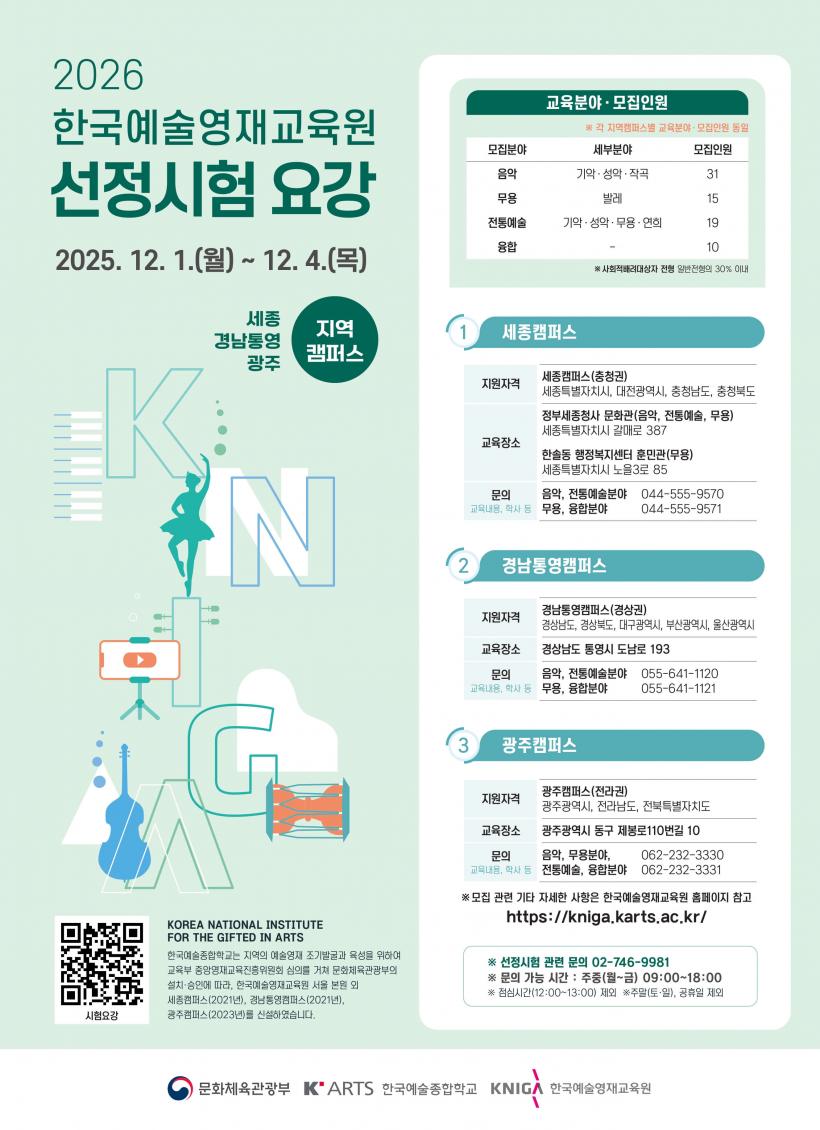 À̹ø ¸ðÁý¿¡´Â ÀϹÝÀüÇüÀ¸·Î ¡ãÀ½¾Ç(±â¾Ç¡¤¼º¾Ç¡¤ÀÛ°î) 31¸í ¡ã¹«¿ë(¹ß·¹) 15¸í ¡ãÀüÅ뿹¼ú(±â¾Ç¡¤¼º¾Ç¡¤¹«¿ë¡¤¿¬Èñ) 19¸í ¡ãÀ¶ÇÕ(¿µ»ó¡¤¸ÖƼ¹Ìµð¾î) 10¸í µî 75¸íÀ» ¼±¹ßÇϸç, »çȸÀû¹è·Á ´ë»óÀÚ ÀüÇüÀº ÀϹÝÀüÇüÀÇ 30% À̳»¿¡¼ º°µµ·Î ¸ðÁýÇÑ´Ù.