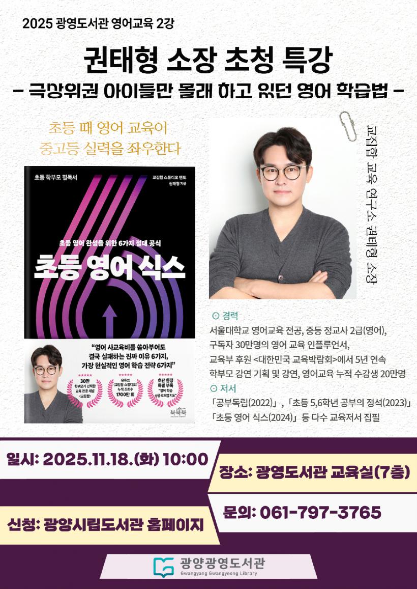 ±ÇÅÂÇü ¼ÒÀåÀº ¼¿ï´ëÇб³¿¡¼ ¿µ¾î±³À°À» Àü°øÇϰí Àü±¹ 30¿© Áö¿ª¿¡¼ ¿µ¾î ±³À°¹ý°ú ÇнÀ¹ý °¿¬À» ÁøÇàÇØ ¿Â ¿µ¾î±³À° Àü¹®°¡´Ù.