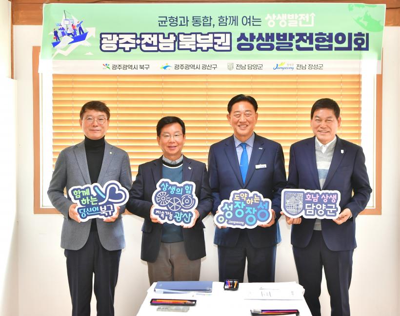 ÇÑÆí, ±¤ÁÖ¡¤Àü³² ºÏºÎ±Ç »ó»ý¹ßÀüÇùÀÇȸ´Â ´ã¾ç±º, ±¤ÁÖ ºÏ±¸, ±¤»ê±¸, À强±ºÀÌ °æÁ¦¡¤»ê¾÷, ¹®È¡¤°ü±¤, ȯ°æ, ±â¹Ý½Ã¼³ µî ´Ù¾çÇÑ ºÐ¾ß¿¡¼ Çù·ÂÇϱâ À§ÇØ 2019³â ¹ßÁ·ÇÑ ÇùÀÇü·Î, Á¤·Ê °£´ãȸ¸¦ ÅëÇØ Áö¿ª Çö¾È ÇØ°á°ú »ó»ý ¹ßÀüÀ» ³íÀÇÇϰí ÀÖ´Ù.