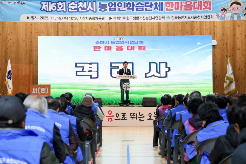 [°ø°£´º½º = ±è¿ëÁø±âÀÚ] ¼øÃµ½Ã(½ÃÀå ³ë°ü±Ô)´Â Áö³ 19ÀÏ »ó»çÁ¾ÇÕüÀ°°ü¿¡¼ ¡®Á¦6ȸ ¼øÃµ½Ã ³ó¾÷ÀÎ ÇнÀ´Üü »ýȰ°³¼±È¸ ³óÃÌÁöµµÀÚȸ ÇѸ¶À½´ëȸ¡¯°¡ ³ó¾÷ÀÎ µî 300¿© ¸íÀÌ Âü¿©ÇÑ °¡¿îµ¥ ¼ºÈ²¸®¿¡ ¿·È´Ù°í ¹àÇû´Ù.