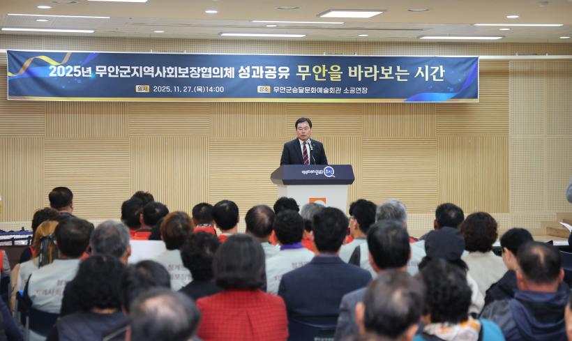 [°ø°£´º½º = ¹Ú¼º¿Á±âÀÚ] ¹«¾È±º Áö¿ª»çȸº¸ÀåÇùÀÇü(°ø°øÀ§¿øÀå ±è»ê)Àº Áö³ 27ÀÏ ½Â´Þ¹®È¿¹¼úȸ°ü ¼Ò°´ç¿¡¼ ½Ç¹«ºÐ°ú À§¿ø°ú À¾¸é ÇùÀÇü À§¿ø, Áö¿ªÁֹΠµî 150¿© ¸íÀÌ Âü¼®ÇÑ °¡¿îµ¥ ¡®2025 ¹«¹Ù½Ã(¹«¾ÈÀ» ¹Ù¶óº¸´Â ½Ã°£)¡¯ ¼º°ú ¹ßÇ¥´ëȸ¸¦ °³ÃÖÇß´Ù.