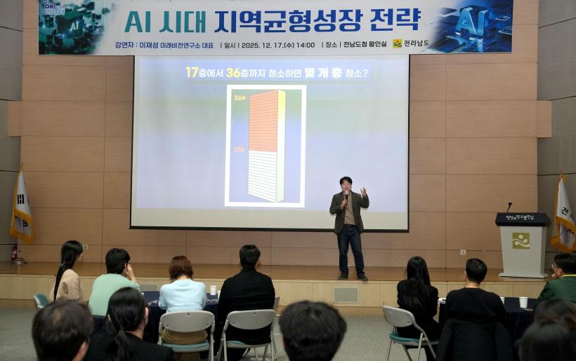 À̳¯ °¿¬¿¡´Â Àü³²µµ¿Í ½Ã±º °ø¹«¿ø, ÃâÀÚ¡¤Ã⿬±â°ü, »ê¾÷ °ü°èÀÚ µî 300¿© ¸íÀÌ Âü¼®ÇØ AI ±â¹Ý »ê¾÷Àüȯ È帧°ú Áö¿ª ¹ßÀü Àü·« ¹æÇâÀ» °øÀ¯Çß´Ù.