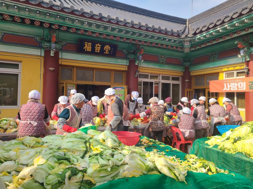 À̳¯ Çà»ç¿¡´Â ½º´Ô°ú ½Åµµ, Áö¿ªÀÇ ÀÚ¿øºÀ»çÀÚµéÀÌ ÇÔ²² Âü¿©ÇØ 3,000Æ÷±âÀÇ ±èÀå ±èÄ¡¸¦ ÁغñÇßÀ¸¸ç, Á¤¼º²¯ ´ãÀº ±èÄ¡´Â Áö¿ªÀÇ ¾î¸£½Åµé°ú Ãë¾à°èÃþ¿¡ Àü´ÞµÆ´Ù.