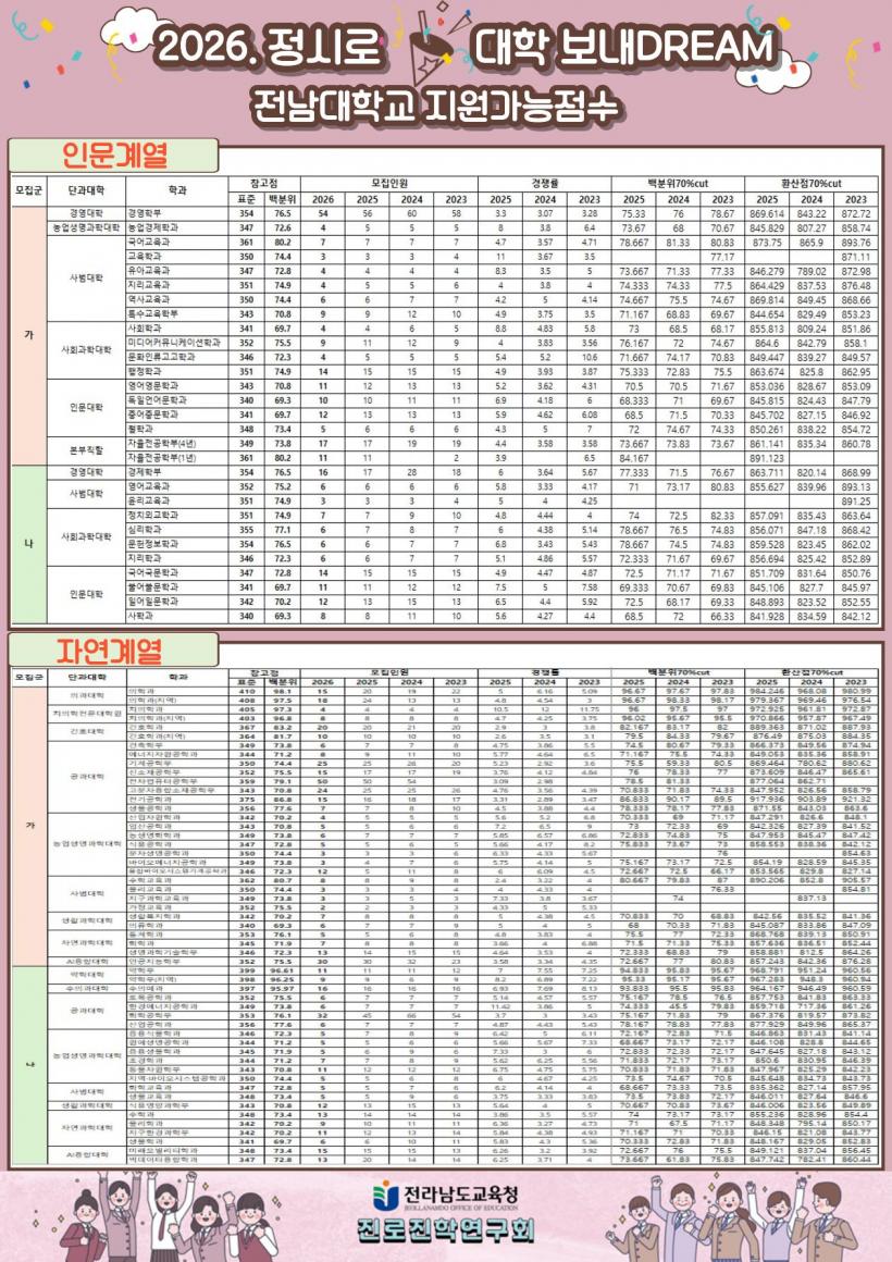 À̹ø ¹èġǥ¿¡´Â ¼öµµ±Ç°ú Àü¶ó±Ç ÀÇ¡¤Ä¡¡¤¾àÇаè¿, ¼¿ï ÁÖ¿ä ´ëÇÐ, Àü³²´ëÇÐÀÇ Áö¿ø °¡´É Á¡¼ö°¡ ÇÔ²² Á¦½ÃµÆ´Ù.