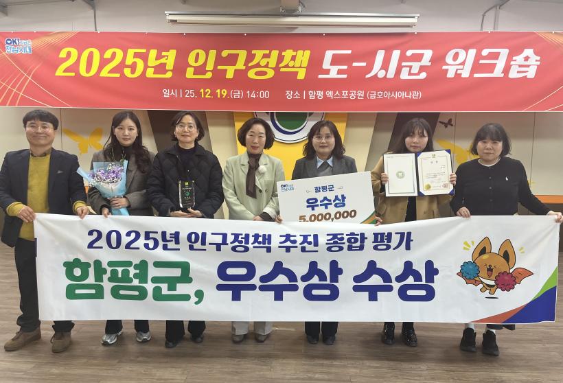 ÇÔÆò±ºÀº Àü³²µµ°¡ Áö³ 19ÀÏ ÇÔÆò¿¢½ºÆ÷°ø¿ø ±ÝÈ£¾Æ½Ã¾Æ³ª°ü¿¡¼ °³ÃÖÇÑ ¡®2025³â Àα¸Á¤Ã¥ Á¾ÇÕÆò°¡¡¯¿¡¼ ¿ì¼ö»óÀ» ¼ö»óÇß´Ù°í 22ÀÏ ¹àÇû´Ù.