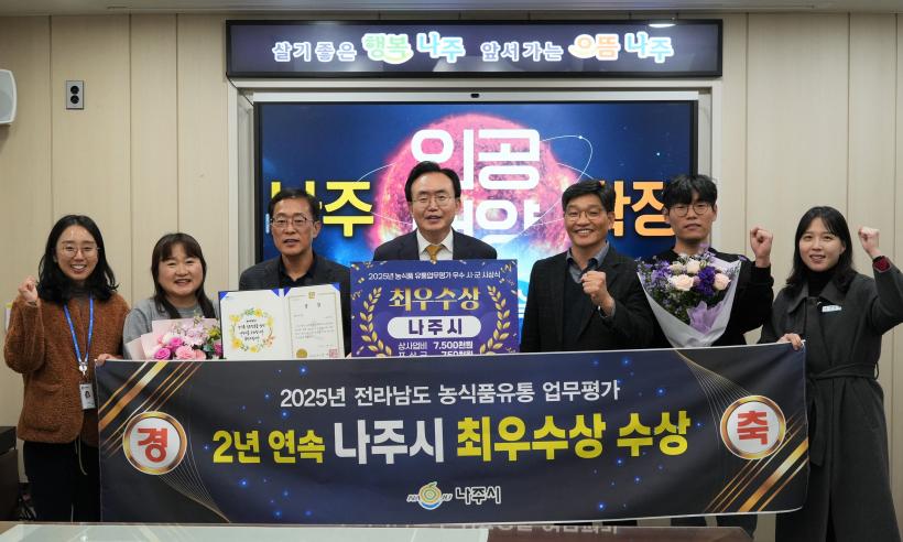 ³ªÁÖ½Ã(½ÃÀå À±º´ÅÂ)´Â Àü¶ó³²µµ°¡ ÁÖ°üÇÑ ¡®2025³â Àü¶ó³²µµ ³ó½ÄǰÀ¯Åë ¾÷¹«Æò°¡¡¯¿¡¼ 2³â ¿¬¼Ó ÃÖ¿ì¼ö»óÀ» ¹Þ¾Ò´Ù°í Áö³ 26ÀÏ ¹àÇû´Ù.
