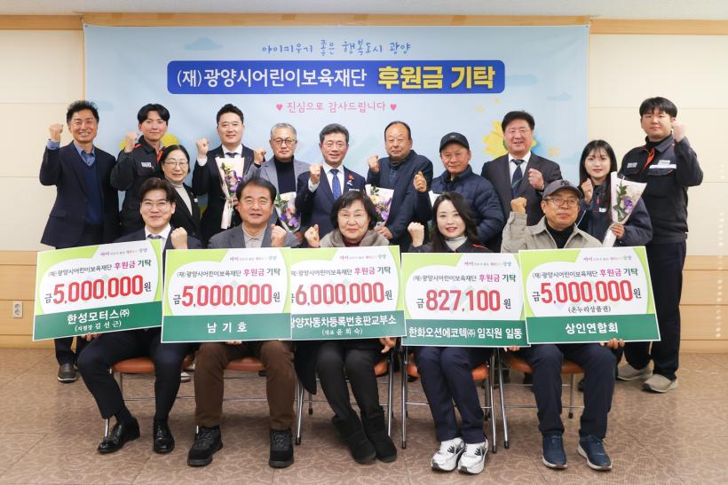 À̹ø¿¡ ±âŹµÈ ÈÄ¿ø±ÝÀº ¡â±¤¾çÀÚµ¿Â÷µî·Ï¹øÈ£ÆÇ±³ºÎ¼Ò(´ëÇ¥ À±Èñ¼÷) 6¹é¸¸ ¿ø ¡â³²±âÈ£(°³ÀÎ) 5¹é¸¸ ¿ø ¡âÇѼº¸ðÅͽº(ÁÖ) (ÁöÁ¡Àå ±è¼±±Ù) 5¹é¸¸ ¿ø ¡â±¤¾ç»óÀο¬ÇÕȸ 5¹é¸¸ ¿ø ¡â¿©¼öÇ×µµ¼±»ç(´ëÇ¥ °Ã¶¿õ) 5¹é¸¸ ¿ø ¡â(ÁÖ)ÇǵðÅØ ¾Ë¶ãÁÖÀ¯¼Ò(´ëÇ¥ ¼ÒÀçÇÑ) 2¹é¸¸ ¿ø ¡âÇÑÈ¿À¼Ç¿¡ÄÚÅØ(ÁÖ) ÀÓÁ÷¿øÀϵ¿ 82¸¸ 7õ ¿ø ¡â¹é¿ë¼ø(°³ÀÎ) 50¸¸ ¿øÀ¸·Î, ±¤¾çÁö¿ª ±â¾÷°ú ½Ã¹ÎÀÌ Á¤¼º²¯ ¸ðÀº ÃÑ 2,932¸¸ 7õ ¿øÀÌ Àç´Ü¿¡ Àü´ÞµÆ´Ù.