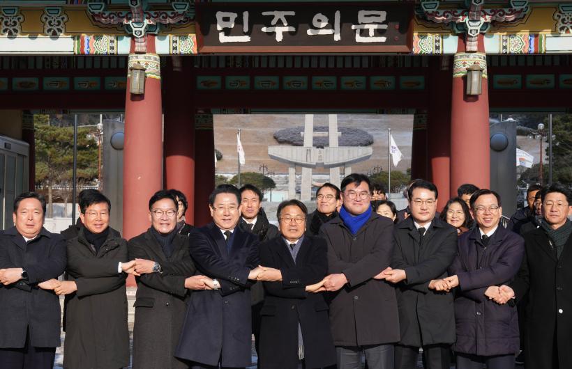 ±è¿µ·Ï Àü³²µµÁö»ç¿Í °±âÁ¤ ±¤ÁÖ½ÃÀåÀº À̳¯ ±¹¸³5¡¤18¹ÎÁÖ¹¦Áö¸¦ Âü¹èÇÑ ÈÄ ¹ÎÁÖÀÇ ¹® ¾Õ¿¡¼ ±¤ÁÖ½Ã¿Í Àü³²µµ¸¦ ÅëÇÕÇÑ ¡®ÅëÇÕ Áö¹æÁ¤ºÎ¡¯ ¼³Ä¡ ÃßÁøÀ» À§ÇÑ °øµ¿¼±¾ð¹®À» ¹ßÇ¥Çß´Ù.