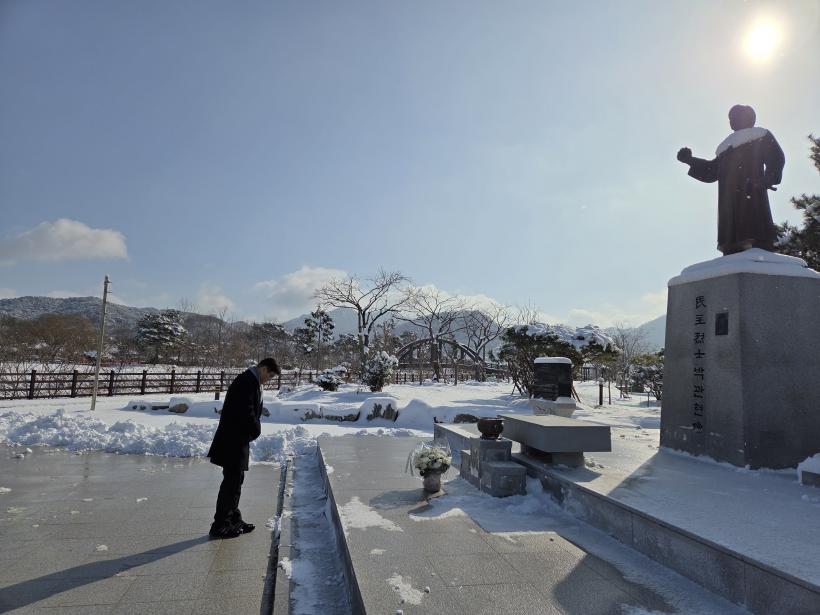 À̳¯ Âü¹è¿¡¼´Â ¡°¹Ú°üÇö ¿»çÀÇ ¹ÎÁÖÀû ½Å³ä°ú Èñ»ýÀº °ú°ÅÀÇ ±â¾ï¿¡ ¸Ó¹«´Â °ÍÀÌ ¾Æ´Ï¶ó, ¿À´ÃÀÇ ±³½Ç°ú Çб³¿¡¼ »ì¾Æ ¿òÁ÷¿©¾ß ÇÒ °¡Ä¡¡±¶ó¸ç, ±³À°À» ÅëÇÑ ¹ÎÁֽùΠ¾ç¼ºÀÇ Ã¥¹«¸¦ ´Ù½Ã ÇÑ ¹ø ´ÙÁüÇß´Ù.