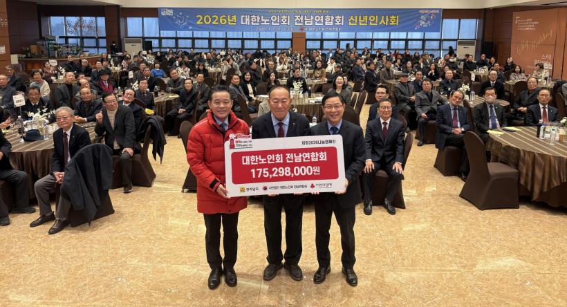 Áö³ 7ÀÏ ¹«¾È ½ºÄ«ÀÌ¿þµùÄÁº¥¼Ç¿¡¼ ¿¸° 2026³â ´ëÇѳëÀÎȸ Àü³²¿¬ÇÕȸ ½Å³âÀλçȸ¿¡¼ ÁøÇàµÈ ±âŹ½Ä¿¡´Â Á¤±¤¼± Àü³²µµ º¸°Çº¹Áö±¹Àå, ±èµ¿±Ø Àü³²»çȸº¹Áö°øµ¿¸ð±Ýȸ »ç¹«Ã³Àå, Á¤¾ç¼ö ´ëÇѳëÀÎȸ Àü³²¿¬ÇÕȸÀåÀ» ºñ·ÔÇÑ 22°³ ½Ã±º ÁöȸÀå µî 200¿© ¸íÀÌ Âü¼®Çß´Ù.