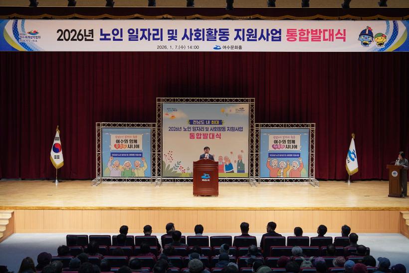 [°ø°£´º½º = ¾ÈÀ翵±âÀÚ] ¿©¼ö½Ã´Â Áö³ 7ÀÏ ¿©¼ö¹®ÈȦ¿¡¼ ¡®2026³â ³ëÀÎ ÀÏÀÚ¸® ¹× »çȸȰµ¿ Áö¿ø»ç¾÷ ÅëÇչߴë½Ä¡¯À» °³ÃÖÇß´Ù.
