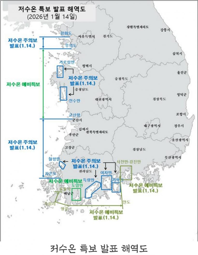 Àú¼ö¿Â Ưº¸´Â ¼ö¿ÂÀÌ 7¡É·Î ³»·Á°¡¸é ¿¹ºñƯº¸°¡, 4¡É·Î ¶³¾îÁö¸é ÁÖÀǺ¸°¡ ¹ß·ÉµÇ¸ç, ¼ö¿Â 4¡É »óŰ¡ 3ÀÏ ÀÌ»ó Áö¼ÓµÇ¸é °æº¸·Î °Ý»óµÈ´Ù.
