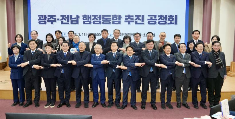 ±¤ÁÖ±¤¿ª½Ã(½ÃÀå °±âÁ¤)¿Í Àü¶ó³²µµ(µµÁö»ç ±è¿µ·Ï)´Â 15ÀÏ ¿ÀÈÄ 1½Ã ±¹È¸ÀÇ¿øÈ¸°ü Á¦1¼ÒȸÀǽǿ¡¼ ¡®±¤ÁÖÀü³² ÇàÁ¤ÅëÇÕ ÃßÁø °øÃ»È¸¡¯¸¦ ¿¾î Ưº°¹ý¾ÈÀÇ ÁÖ¿ä ³»¿ë°ú ÀïÁ¡, ÇàÁ¤ÅëÇÕ ÃßÁø ¹æÇ⠵ ´ëÇÑ °¢°è ÀǰßÀ» Æø³Ð°Ô ¼ö·ÅÇß´Ù.