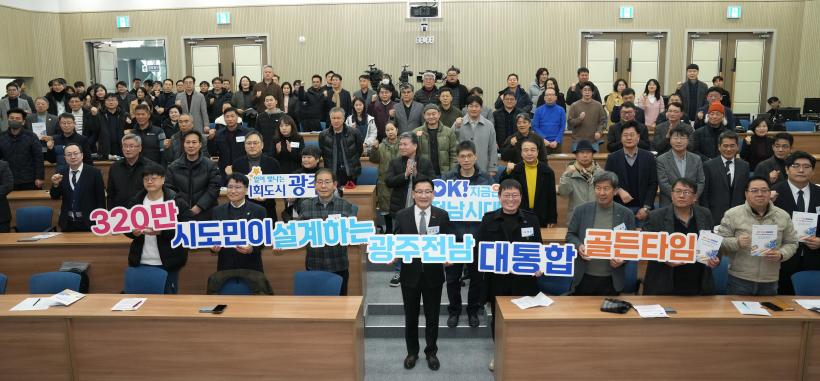 °À§¿ø °æÁ¦ºÎÁö»ç´Â ¡°±¤ÁÖ¡¤Àü³² ÅëÇÕÀÇ º»ÁúÀº 320¸¸ ½Ã¡¤µµ¹ÎÀÌ Æ¯º°½ÃÀÇ ¹Ì·¡¸¦ ¼³°èÇÏ´Â ÁÖü·Î ³ª¼´Â µ¥ ÀÖ´Ù¡±¸ç ¡°¼÷ÀÇ¿Í °ø·Ð¿¡ ±â¹ÝÇÑ ¹ÎÁÖÁÖÀÇ ¼Ó¿¡¼ ÀçÁ¤°ú ±ÇÇÑ À̾縸ŠÁß¿äÇÑ °ÍÀÌ ½Ã¹ÎÀÚÄ¡ ¿ª·®À̸ç, ûå´ëµ¿È¸ ¡®¹Ù¶õ¡¯ÀÌ ±× Á᫐ ¹«´ë°¡ µÇ±æ ¹Ù¶õ´Ù¡±°í °Á¶Çß´Ù.