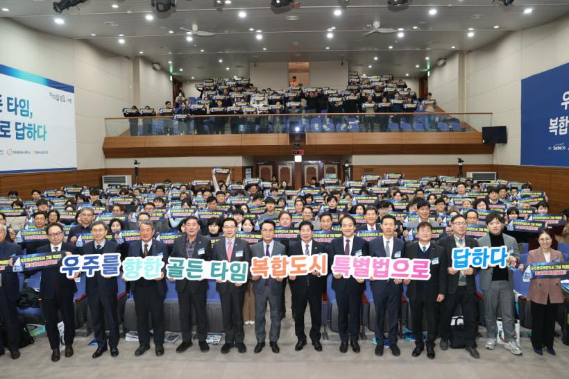 Çà»ç¿¡´Â ¼ÃµÈ£ ±¹È¸ÀÇ¿ø, °ø¿µ¹Î °íÈﱺ¼ö, ¹Úµ¿½Ä »çõ½ÃÀå, °ü°è °ø¹«¿ø, ÇÐ°è ¹× »ê¾÷°è Àü¹®°¡ µîÀÌ Âü¼®ÇØ ¿ìÁÖÇ×°øº¹ÇÕµµ½Ã Ưº°¹ýÀÇ Çʿ伺°ú ÃßÁø ¹æÇâ¿¡ ´ëÇØ ½ÉµµÀÖ°Ô ³íÀÇÇß´Ù.