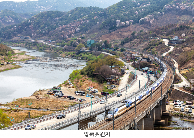 ±âÂ÷¸¶À»¿¡¼ Â÷·Î 10¿© ºÐ °Å¸®, ¾Ð·ÏÀ¯¿øÁö¿¡ À̸£¸é ¼¶Áø°ÀÌ ½Ã¾ß¸¦ ¿¬´Ù. °¹°Àº ÀÜÀÜÈ÷ È帣°í, °º¯Àº ÇÑÃþ ³Ð¾î º¸ÀδÙ.