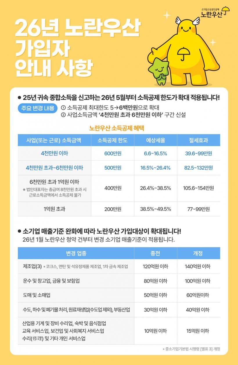 Áö¿ø ´ë»óÀº ¿¬ ¸ÅÃâ¾× 3¾ï ¿ø ÀÌÇÏ ¼Ò»ó°øÀÎ Áß 2026³âµµ ³ë¶õ¿ì»ê °øÁ¦ ½Å±Ô °¡ÀÔÀÚ´Ù. ¸Å¿ù °øÁ¦ºÎ±Ý ³³ÀÔ ½Ã ¿ù 3¸¸ ¿ø¾¿, 1³â°£ ÃÖ´ë 36¸¸ ¿øÀÇ Àå·Á±ÝÀÌ Àû¸³µÈ´Ù.
