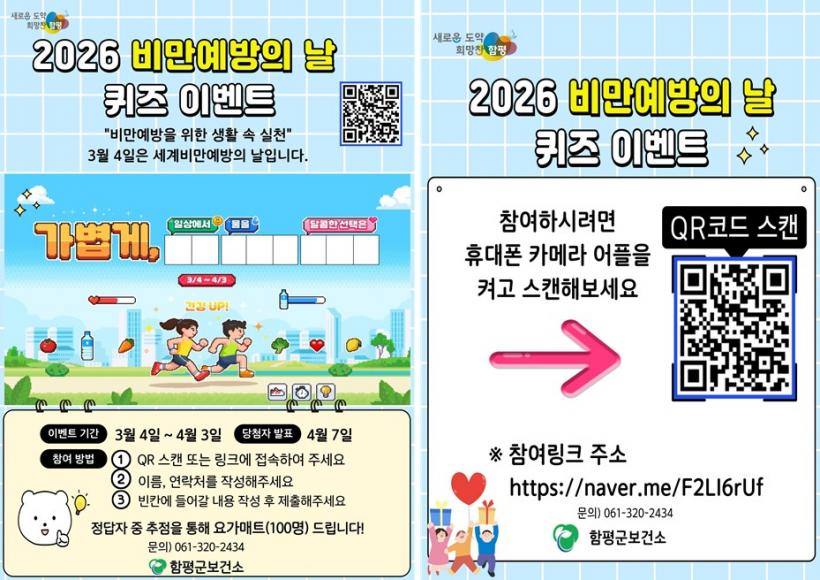 ƯÈ÷ 3¿ù ÇÑ ´ÞÀ» ¡®ºñ¸¸¿¹¹æ ÁýÁß È«º¸ ±â°£¡¯À¸·Î ÁöÁ¤ÇØ ¸ð¹ÙÀÏ °È±â 縰Áö¿Í ÄûÁî À̺¥Æ®¸¦ ¿î¿µÇϰí, ¸ñÇ¥¸¦ ´Þ¼ºÇÑ Âü¿©ÀÚ¿¡°Ô´Â Ãß÷À» ÅëÇØ ±â³äǰÀ» Á¦°øÇÒ ¿¹Á¤ÀÌ´Ù.