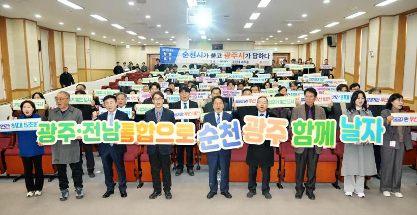 [°ø°£´º½º = ±è¼ö±Ù±âÀÚ] ±¤ÁÖ±¤¿ª½Ã(½ÃÀå °±âÁ¤)´Â 4ÀÏ ±¹¸³¼øÃµ´ëÇб³ ÆÄ·çȦ¿¡¼ ¡®±¤ÁÖ‧Àü³² ÅëÇÕ ¼øÃµ½Ã »ó»ýÅäÅ©¡¯¸¦ ¿°í, Àü³²±¤ÁÖÅëÇÕÆ¯º°½Ã Ãâ¹ü¿¡ µû¸¥ ¼øÃµ µî Àü³² µ¿ºÎ±Ç »ê¾÷¹ßÀü ¹æ¾ÈÀ» Áö¿ª¹Îµé°ú °øÀ¯Çß´Ù.