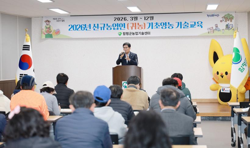 ÇÔÆò±ºÀº Áö³ 11ÀÏ ³ó¾÷±â¼ú¼¾ÅÍ¿¡¼ ½Å±Ô³ó¾÷ÀÎÀÇ ¾ÈÁ¤ÀûÀÎ ³óÃÌ Á¤Âø°ú ¿µ³ó ¿ª·® °È¸¦ À§ÇÑ ¡®2026³â ½Å±Ô³ó¾÷ÀÎ ±âÃÊ¿µ³ó ±â¼ú±³À°¡¯ °³°½ÄÀ» ¿°í ±³À°ÀÇ ½ÃÀÛÀ» ¾Ë·È´Ù°í 12ÀÏ ¹àÇû´Ù.