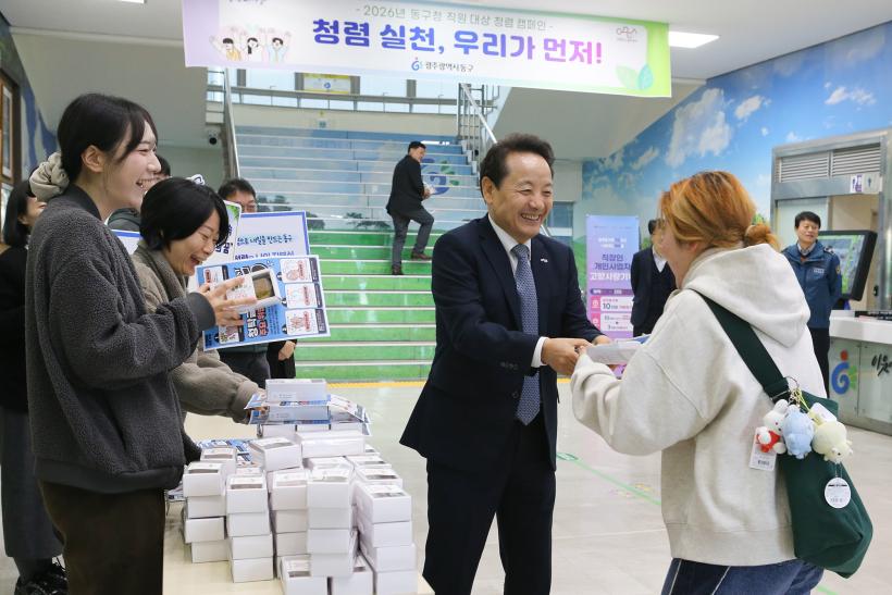 [°ø°£´º½º = ±è´ë¿µ±âÀÚ] ±¤ÁÖ µ¿±¸´Â û·ÅÇÑ °øÁ÷¹®È Á¶¼º°ú °øÁ÷ÀÚ Ã»·Å ÀÇ½Ä Á¦°í¸¦ À§ÇØ ÃÖ±Ù Ãâ±Ù ½Ã°£À» Ȱ¿ëÇØ û»ç ÃâÀÔ±¸¿¡¼ û·Å ½Çõ Ä·ÆäÀÎÀ» ÁøÇàÇß´Ù°í ¹àÇû´Ù.