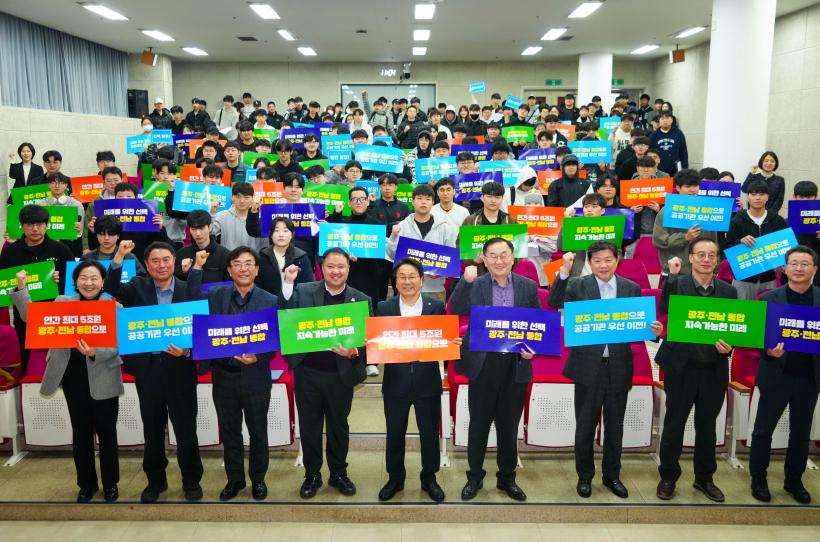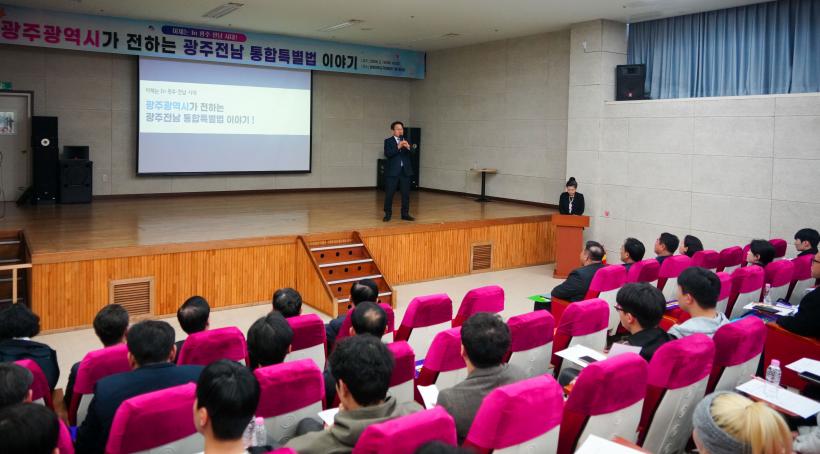 ±¤ÁÖ±¤¿ª½Ã(½ÃÀå °±âÁ¤)´Â 19ÀÏ ¼Û¿ø´ëÇб³ Çлýȸ°ü¿¡¼ ¡®±¤ÁÖ±¤¿ª½Ã°¡ ÀüÇÏ´Â ±¤ÁÖÀü³² ÅëÇÕÆ¯º°¹ý À̾߱⡯ Çà»ç¸¦ ¿¾î ÅëÇÕÆ¯º°¹ýÀÇ ÁÖ¿ä ³»¿ë°ú ÅëÇÕ ÀÌÈÄ º¯È»ó¿¡ ´ëÇØ û³âµé°ú ´ëÈÇß´Ù.
